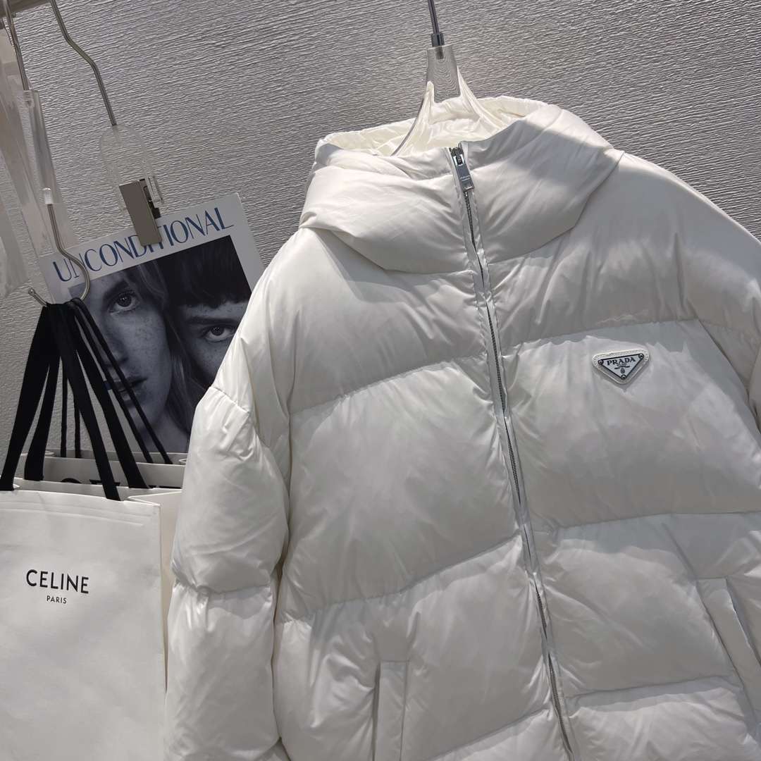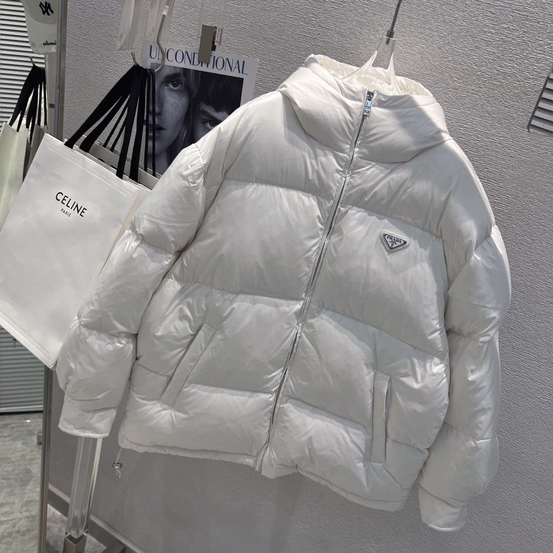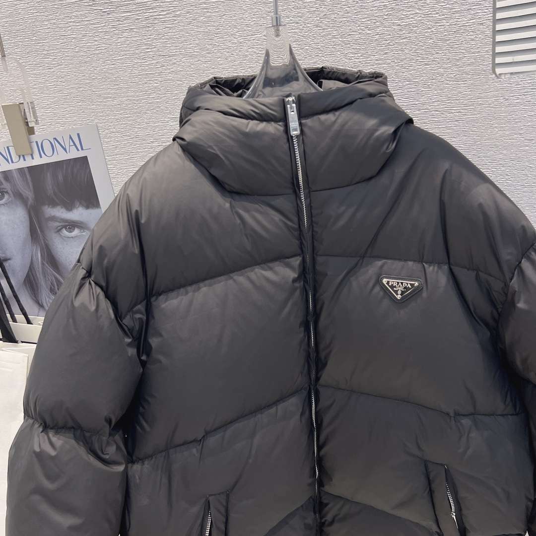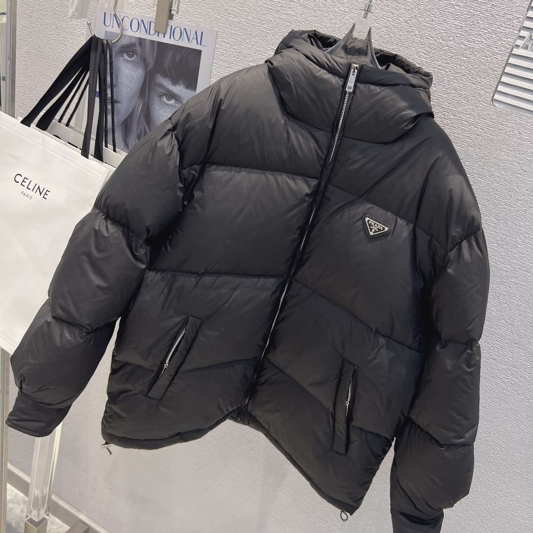 Be the first to review “YESKICKS Prada 23 FW New Hooded Triangle Label Warm Zipper Down Jacket For Unisex Black And White”